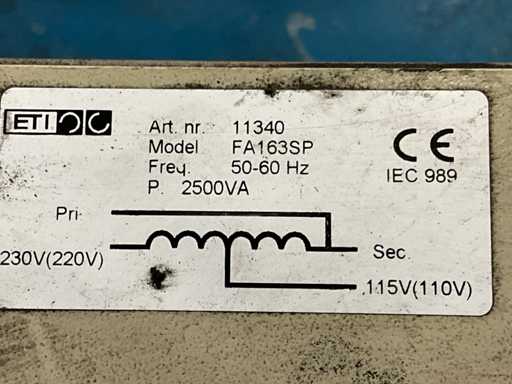 piano del tavolo; ingresso 230 Volt; uscita 100 - 130 Volt;