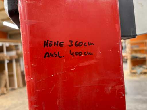 Durata del pagamento: entro tre giorni Ritiro: 13.04-17.04.2026 (8:00 - 16:00) Solo su appuntamento Si prega di notare: Il ritiro non è possibile nei giorni festivi e nei fine settimana. Giorno di visione: 10 marzo 2026 (9:00 – 13:00) Solo su appuntamento al david.polotzek@surplex.com Tutti gli articoli sono venduti come usati e non ispezionati, salvo diversa indicazione. Si prega di consultare la descrizione dell'articolo. Per informazioni più dettagliate su garanzia e garanzia, si prega di consultare le condizioni dell'asta. Nota: In caso di ritiro tardivo, possono sorgere costi aggiuntivi per lo smontaggio, il carico e lo scarico, il trasporto e il noleggio di stoccaggio in un magazzino esterno, che devono essere sostenuti dall'acquirente. Se è necessario un permesso BAFA per l'esportazione, possono essere sostenuti costi aggiuntivi per lo stoccaggio, la manipolazione o lo smantellamento. Contatta per domande tecniche: Ludger Reuther Senior Project Manager Germania Tecnico del legno e maestro falegname Mobile: +49 173 6172604 E-mail: ludger.reuther@surplex.com