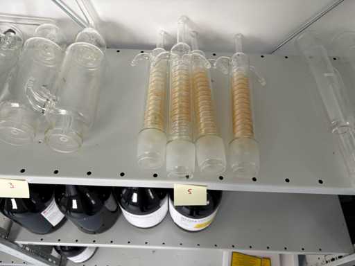 La condizione è prevalentemente utilizzata, in parte con lievi depositi o residui, come è comune nelle normali operazioni di laboratorio. Danni come schegge non erano visibili all'ispezione visiva; La vetraia appare completa e funzionale nel complesso. Grazie alla sua quantità e varietà, il bundle è ideale come supplemento o stock sostitutivo per laboratori, centri di formazione o utenti con elevato consumo di vetro.