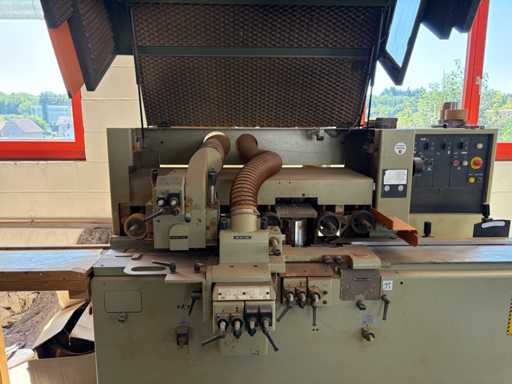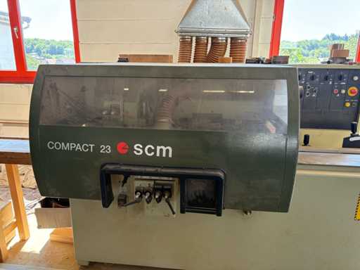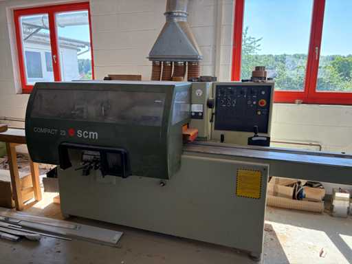 In vendita è una piallatrice a quattro lati robusta e funzionante con precisione SCM COMPACT 23, costruita nel 1993, da applicazione professionale di falegnameria. La macchina è dotata di 4 mandrini (in basso, a destra, a sinistra, in alto) ed è ideale per la profilatura, la calibratura e la piallatura del legno massello.