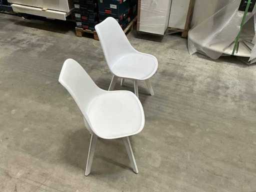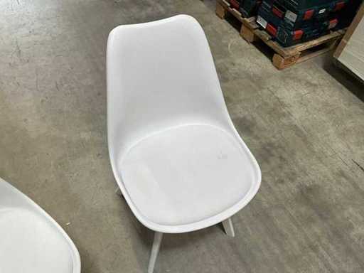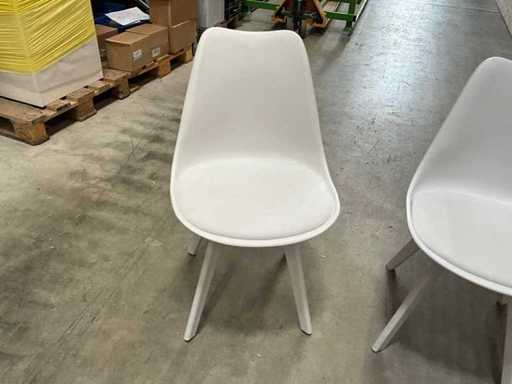 Sedia in plastica bianca con tappezzeria, base in legno 8 pezzi