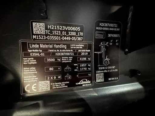 Servizio 2019 + UVV 02/2027 Linde E35HL EVO 3.500kg Carrello elevatore elettrico 2.196 ore