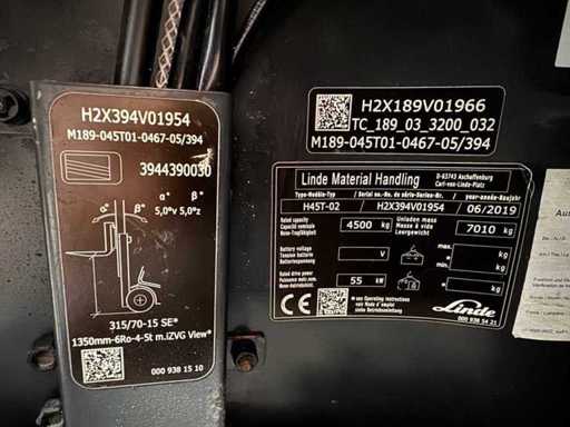 Servizio 2019 + UVV 02/2027 Linde H45T EVO 4.500kg Carrello elevatore a gas 3.+4. Regolatore forche solo 1.769 ore H50