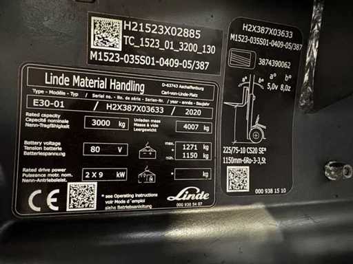 Servizio 2020 + UVV 02/2027 Linde E30 EVO 3.000kg 3.+4. Regolatore della forcella valvole 142cm Carrello elevatore elettrico 12.353 ore