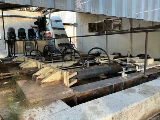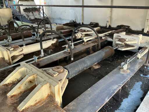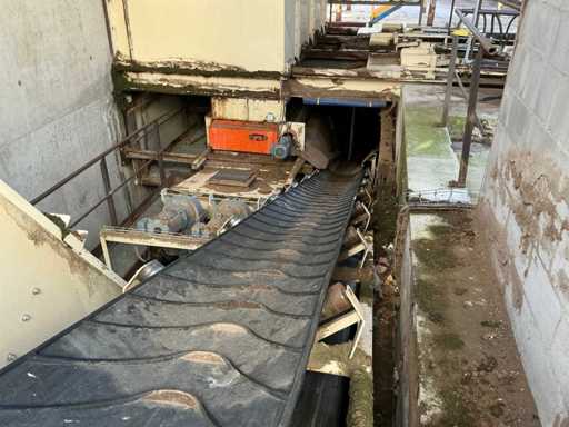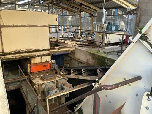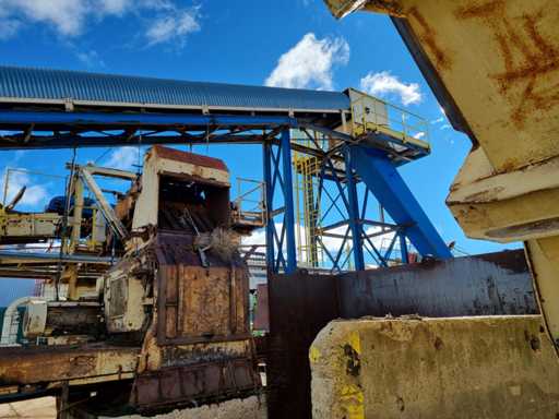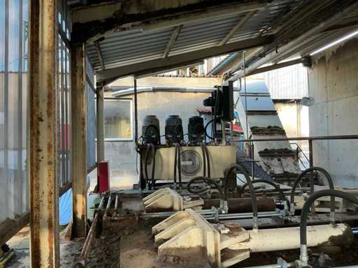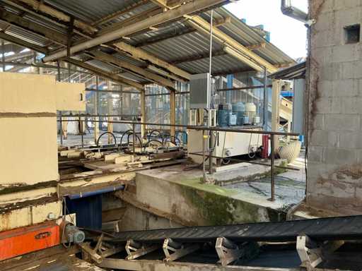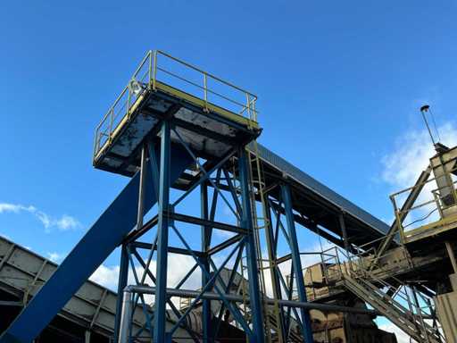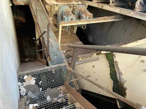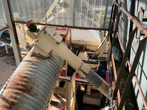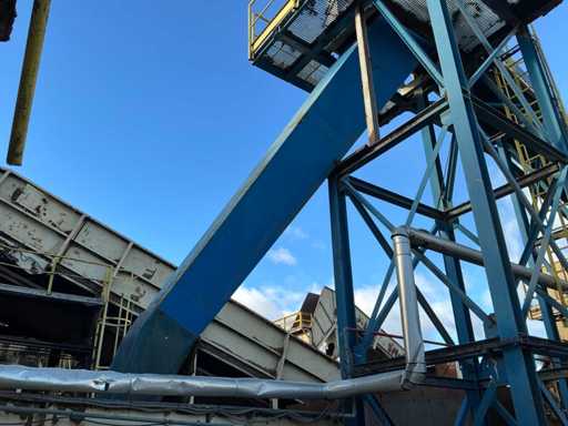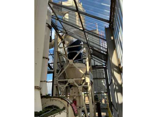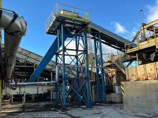 • Area di alimentazione con spingenti idrauliche che avanzano continuamente il materiale verso una cintura di sollevamento all'ingresso della torre, evitando blocchi e regolando il flusso di afflusso.