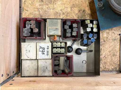 La pressa idraulica per tubi è in condizioni di uso. Sulla custodia così come sui componenti pressati, sono riconoscibili segni di usura legati all'età e all'uso, come graffi, abrasioni da vernice e sporco. La testa di crimazione, l'unità idraulica e gli elementi operativi sono visivamente completi. Anche il set di ganasce a stampa fornito mostra segni di utilizzo, ma appare esteso e completo. Diverse mascelle di stampa sono etichettate o marchiate. Sono disponibili accessori aggiuntivi e un manuale di istruzioni.