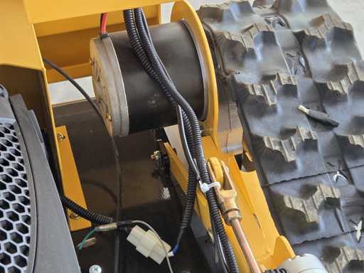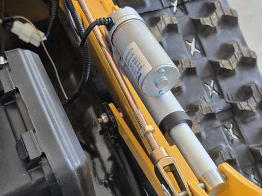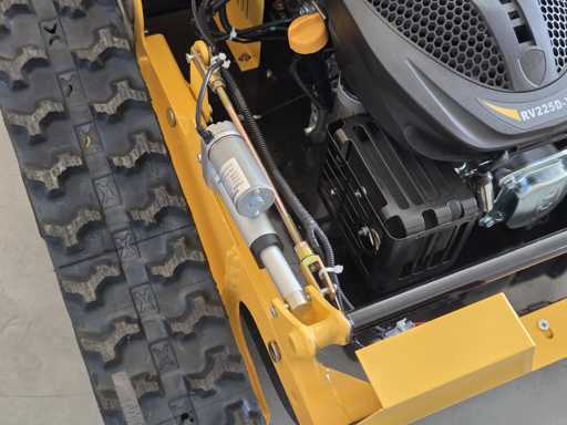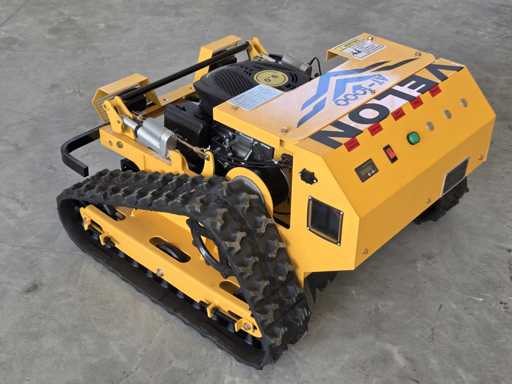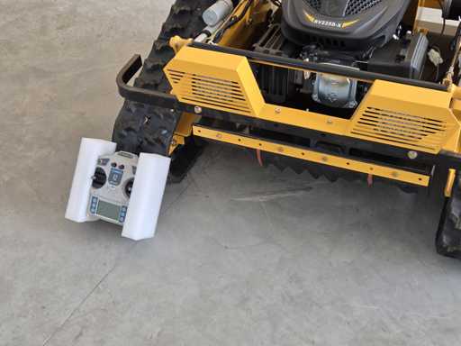Falciatrice elettrica radiocomandata, cingolata a doppio cingolo trainante, accensione elettronica, regolazione elettronica dell'altezza di taglio
