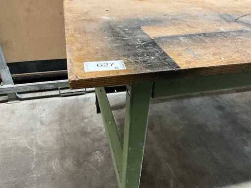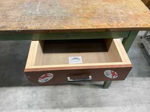 Versione pesante 220cm x 80cm, piano di lavoro in faggio, multiplex con cassetto e telaio in acciaio