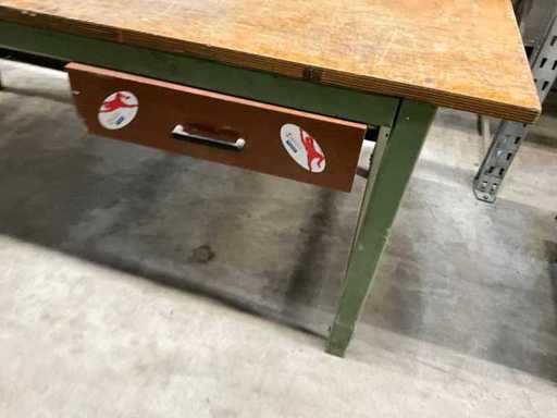 Tavolo da lavoro, versione pesante, piano di lavoro in faggio, multiplex con cassetto e telaio in acciaio