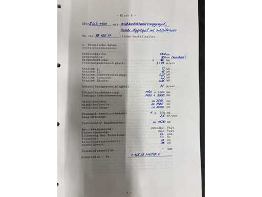 mm, unità 1 rullo di contatto in acciaio scanalato con motore circa 15 KW e velocità del nastro abrasivo circa 22 m/sec.,