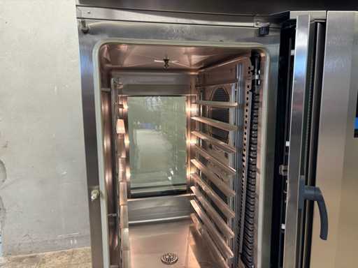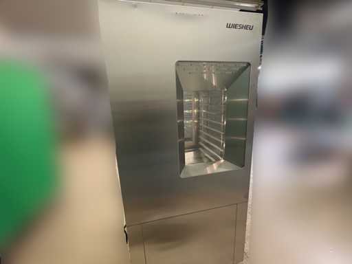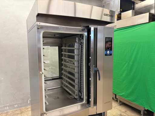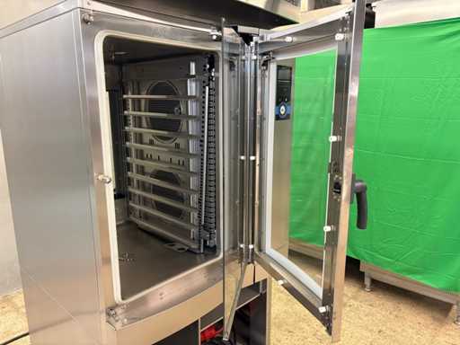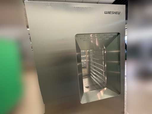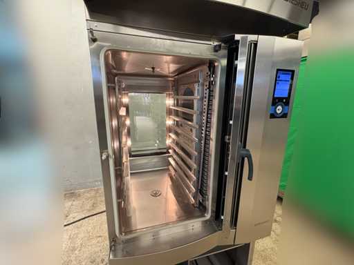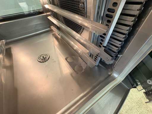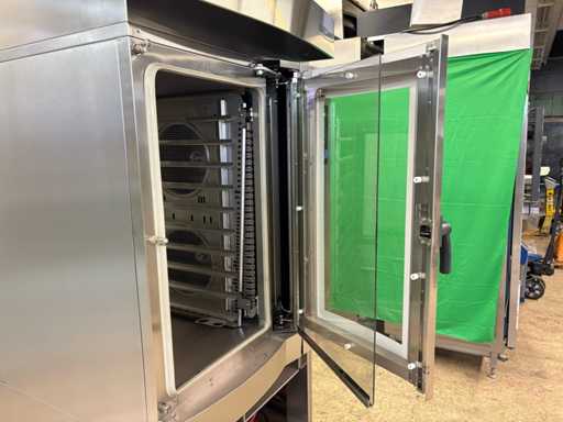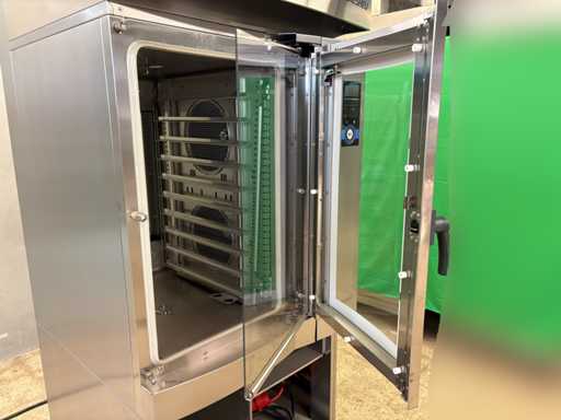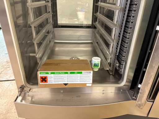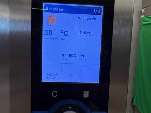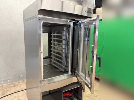 Il WIESHEU Dibas 64D-L è un forno a camere sovrapposte di alta qualità per l'uso professionale in panetterie, supermercati e ristoranti. L'ampia porta panoramica con illuminazione interna a LED offre ai clienti una visione completa del processo di cottura, ideale per l'uso in sala di vendita. Il display touch con immagini del prodotto rende il funzionamento intuitivo e facile da usare. La robusta struttura in acciaio inossidabile garantisce un'affidabilità di lunga durata in un funzionamento continuo intensivo. Il forno è installato su un telaio di base con tecnologia integrata e dispone di una potente cappa per l'estrazione del vapore. Per questo dispositivo è inclusa una scatola con 20 cartucce di pulizia. È stato installato l'ultimo software e la stufa è stata completamente revisionata.