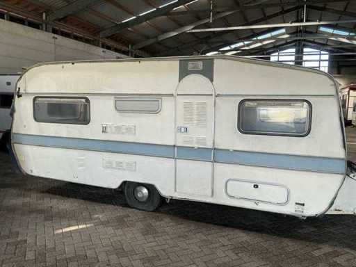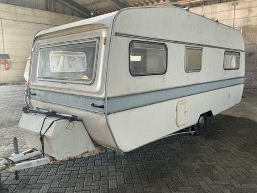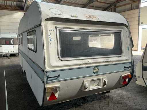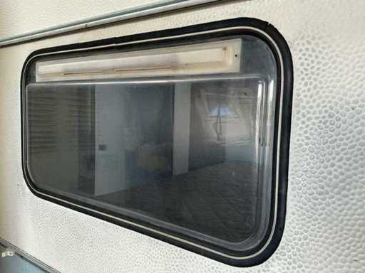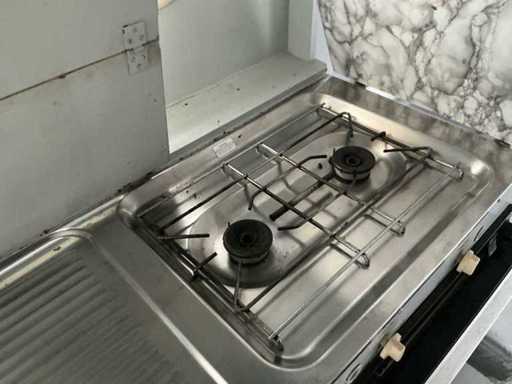 Dotato di: 5 persone sedute sul retro, unità cucina con fornello a gas e frigorifero, sanitario con bagno e lavandino, fornelli, spazio armadio, letto per 2 persone davanti.