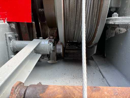 • Seiltrommel und Stahlseil sind montiert, äußerlich in gutem Zustand.