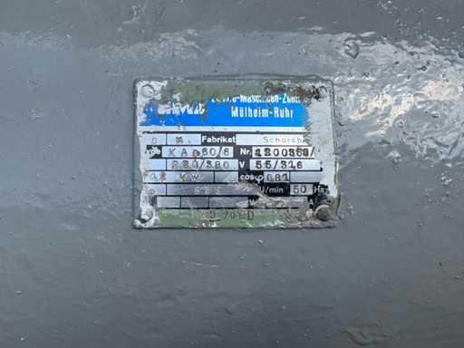 • Das Gerät wurde vollständig entrostet und neu lackiert (Industriegrau mit Sicherheitsabdeckung in Rot).