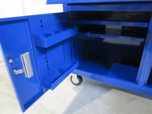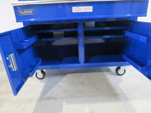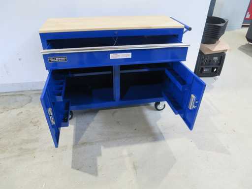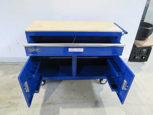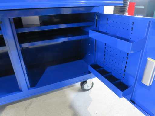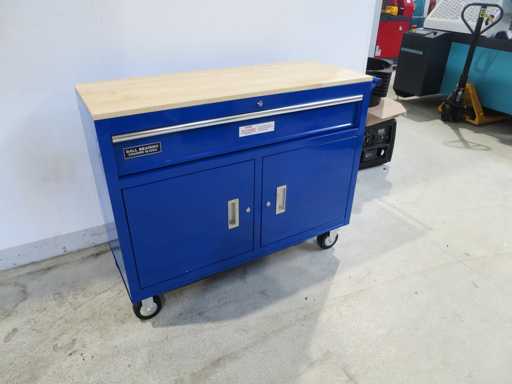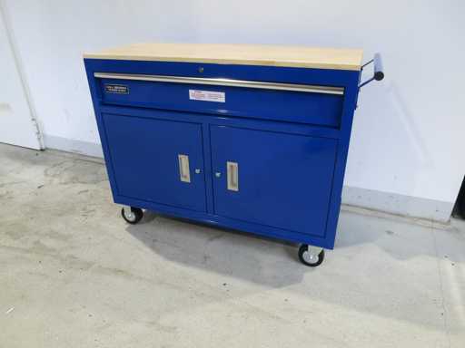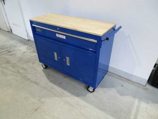 di lavoro in legno 2 x 125 mm. Ruote pesanti con freni.