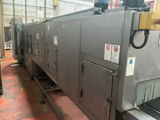 Automatische industrielle Sprühwaschmaschine, entwickelt zur Reinigung von Metallteilen in Bearbeitungsprozessen.