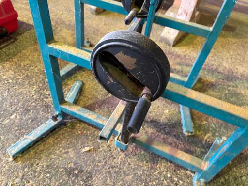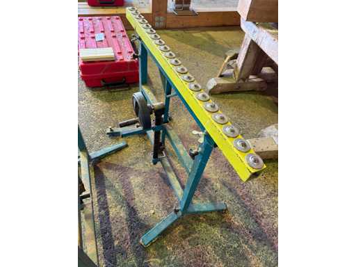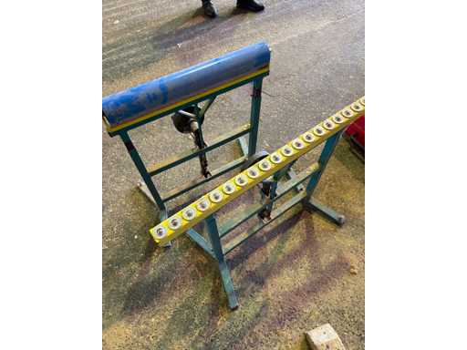 jeweils höhenverstellbar über Handrad, 1 Stk. Mit Rolle, Rollenbreite ca. 670 mm, 1 Stk. mit Kugelrollen, Länge ca. 1000 mm