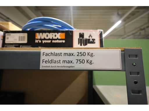 2 x Regal, mit jeweils 5 Böden, Fachlast 250 kg, Feldlast 750 kg