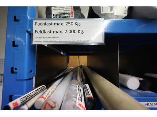 2 x Stangenlagerregal, Fachlast max. 250 kg, Feldlast max. 2000 kg