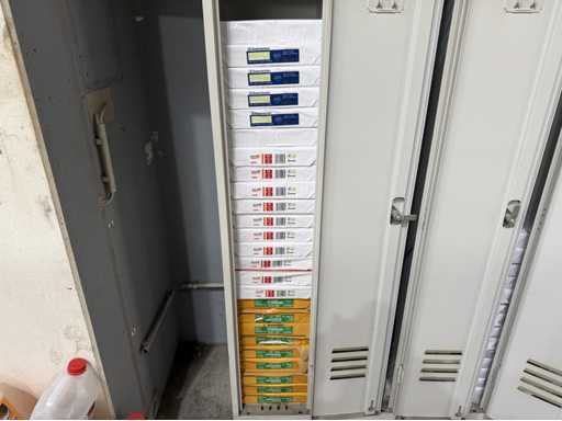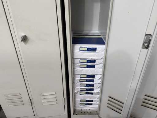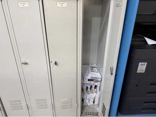 Druckerschrank/Kopiergerätschrank mit Schiebetüren und drei Spinde; weitere Details siehe Fotos; ACHTUNG Kopierer und Kopierpapier sindnicht mit im Lieferumfang enthalten ( komplett ohne Inhalt)