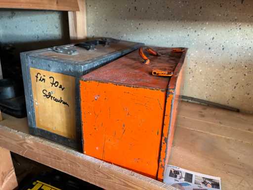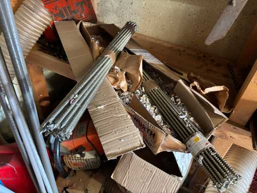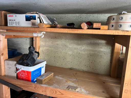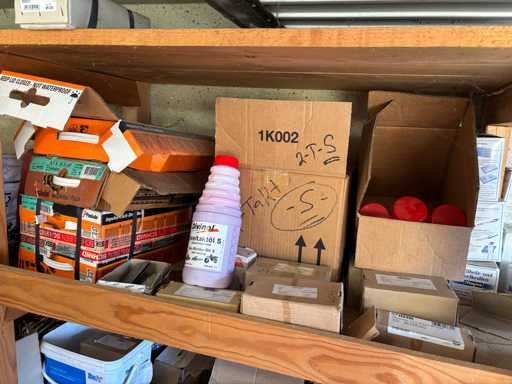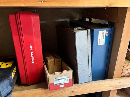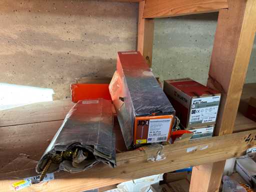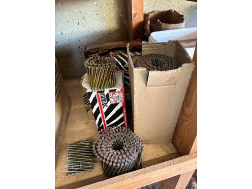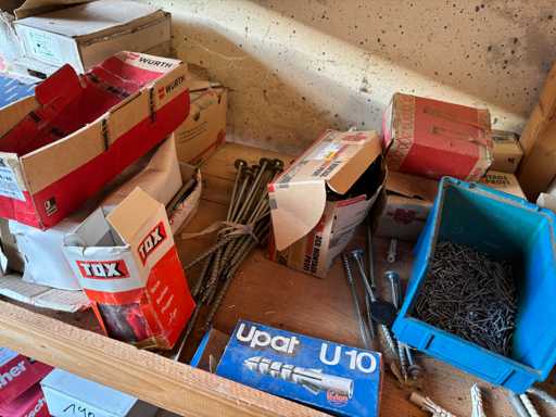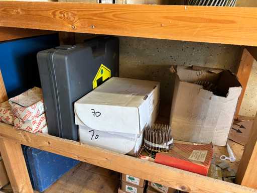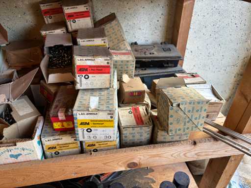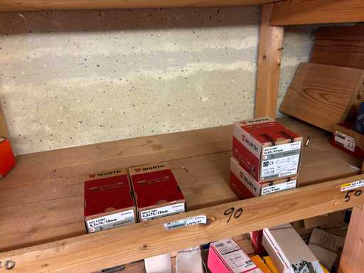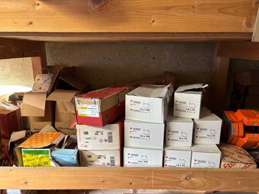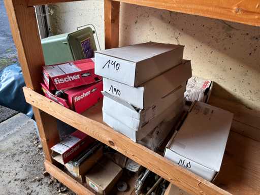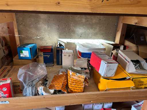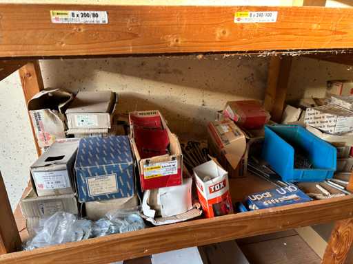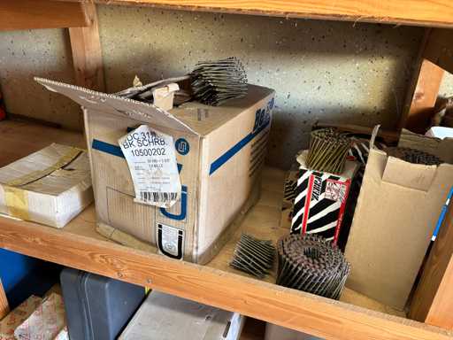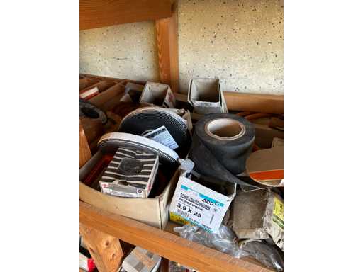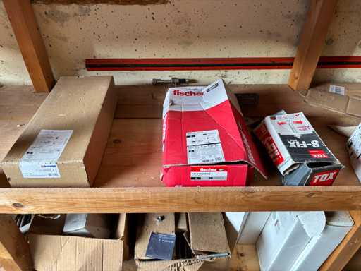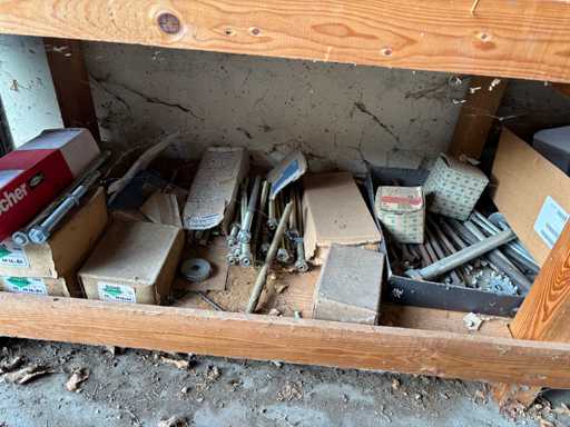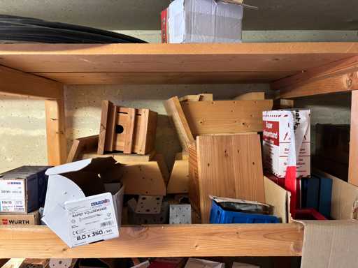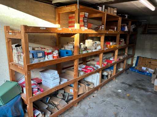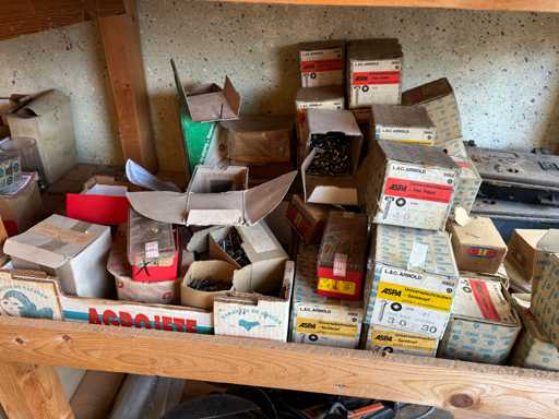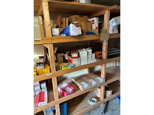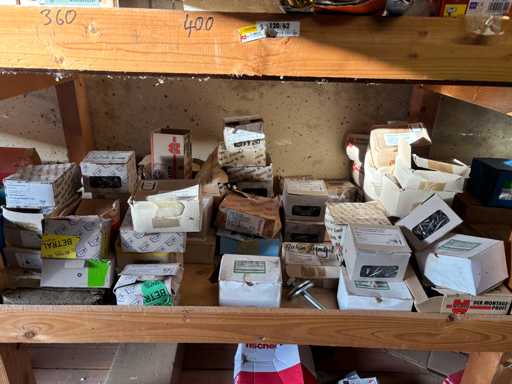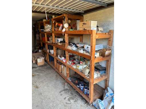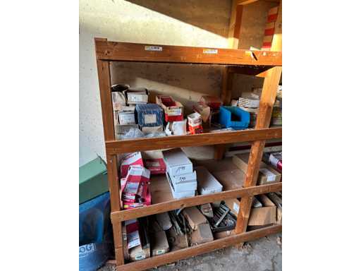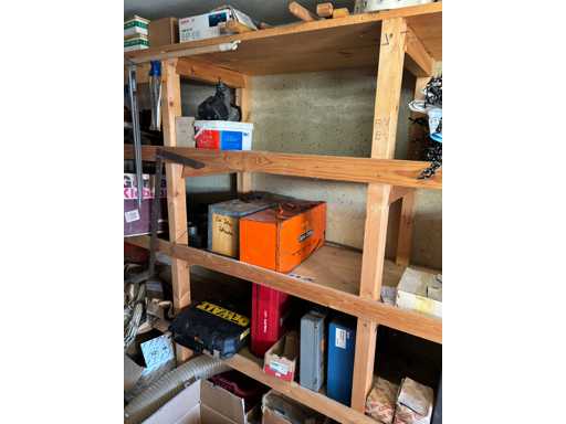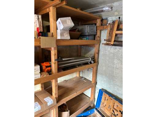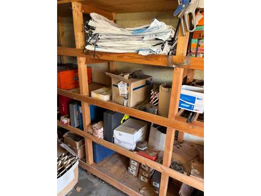 bestehend aus 2 Fachbodenregalen mit Bestand an Schrauben, Dübeln, Nägeln, Bändern, Verbrauchsmaterialien, Werkzeugen, Zimmereizubehör, etc. Bitte beachten Sie, dass diese Maschine "ab Fundament" verkauft wird, d.h., dass ausschließlich der Käufer für die Demontage und Verladung zuständig ist und hierfür auch die Kosten trägt!