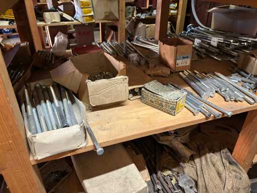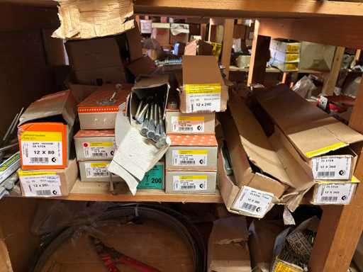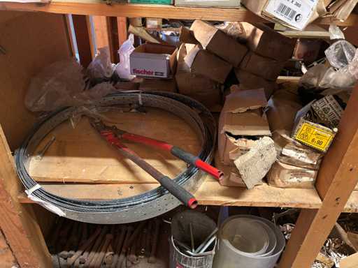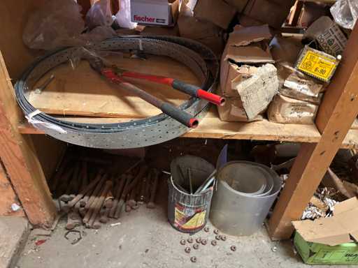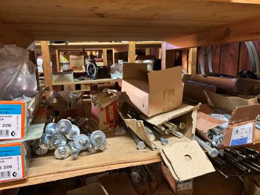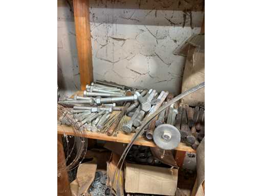 bestehend aus div. Schrauben, Dübeln, Befestigungsmaterialien, Streifennägeln und Zimmereizubehör. Bitte beachten Sie, dass diese Maschine "ab Fundament" verkauft wird, d.h., dass ausschließlich der Käufer für die Demontage und Verladung zuständig ist und hierfür auch die Kosten trägt!