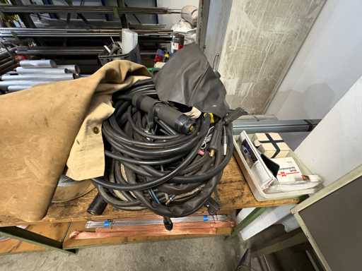 Zubehör: Masseklemmen, Elektrodenhalter, Schlackenhammer, Schutzkleidung, Handschuhe, Schweißerschutzdecken