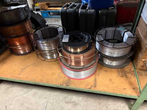 Schweißdrähte auf Spulen (Stahl, Kupfer, Edelstahl, verschiedene Stärken 0,8–1,6 mm)