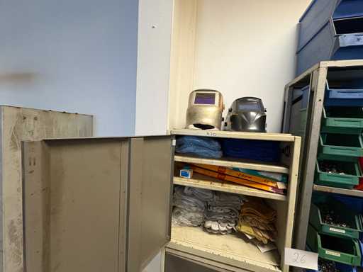 Arbeitstisch & Metallschränke zur Lagerung enthalten