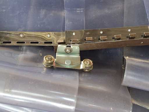 Lamellenvorhang, bestehend aus einzelnen Lamellen je 4000 mm lang und 300 mm breit mit Haken + Rollensystem gesamt 40 Lamellen = 12 m breit und 4 m hoch