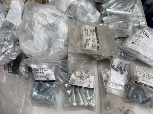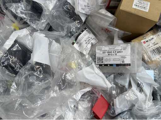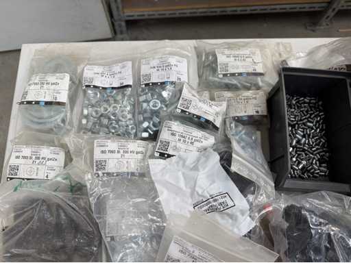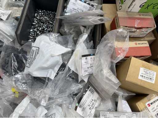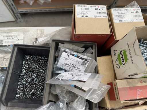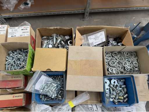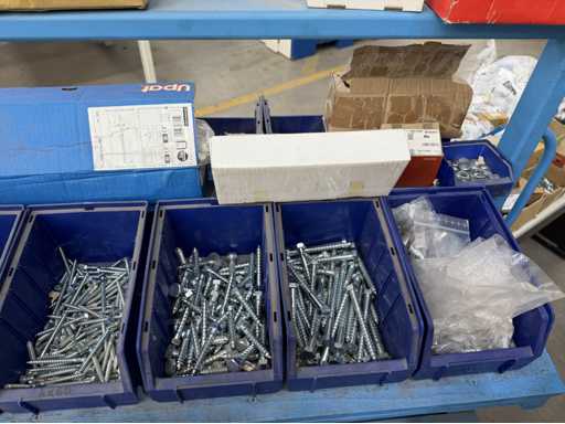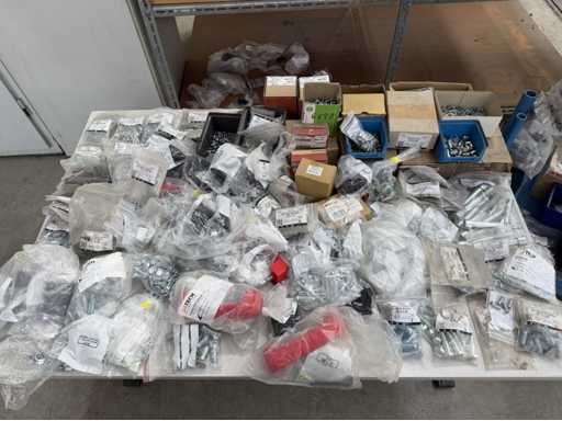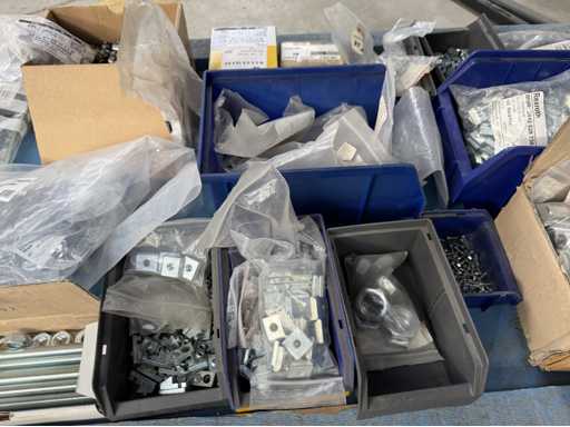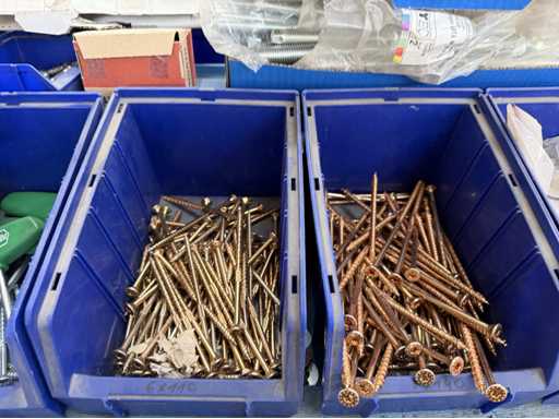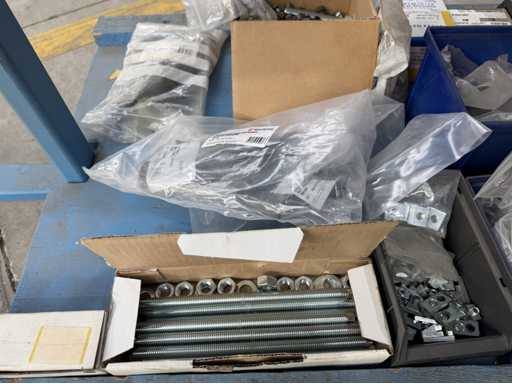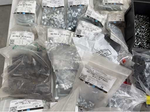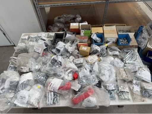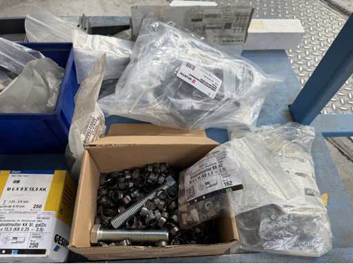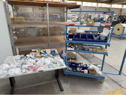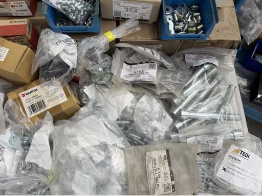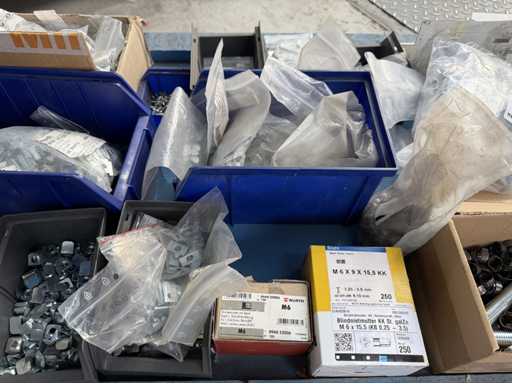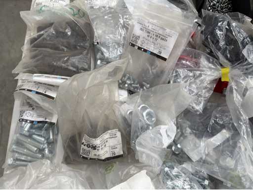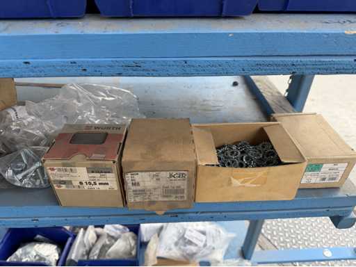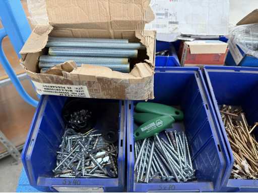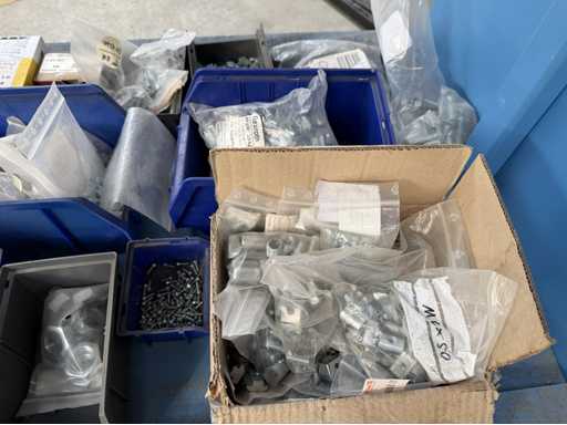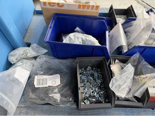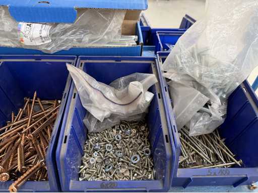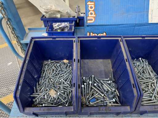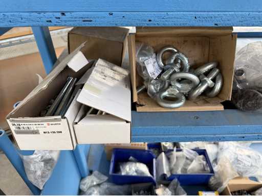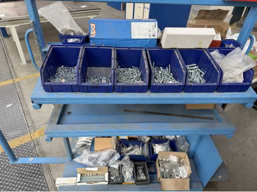Rollwagen ausgestattet mit Kunststoffboxen und Inhalt: Ringschrauben, Schrauben,Muttern in unterschiedlichen Ausführungen; weitere Details siehe Fotos; ACHTUNG Tisch ist nicht mit im Lieferumfang