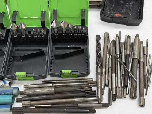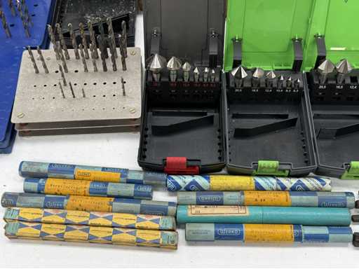 Sortiment an Spiralbohrern und Senkern, in verschiedenen Durchmessern; weitere Details siehe Fotos