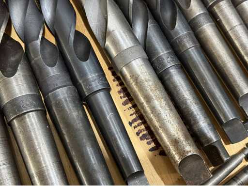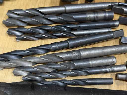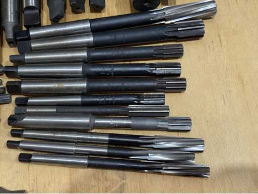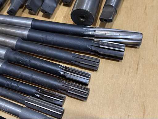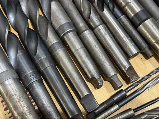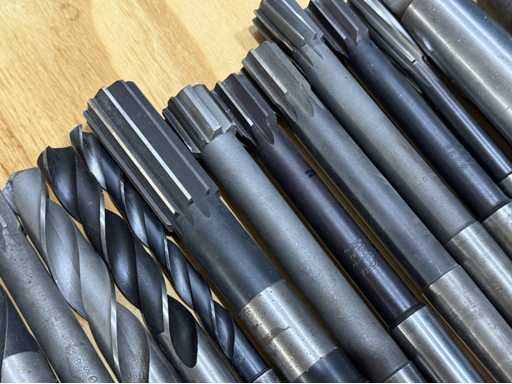 Großes Sortiment an Spiralbohrern mit unterschiedlichen Längen und Durchmessern, diverse Reibahle, siehe Fotos, Gesamt 60 Stück, Durchmesser von 5-36 mm