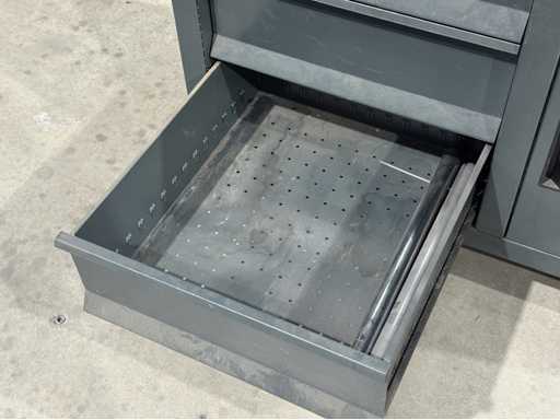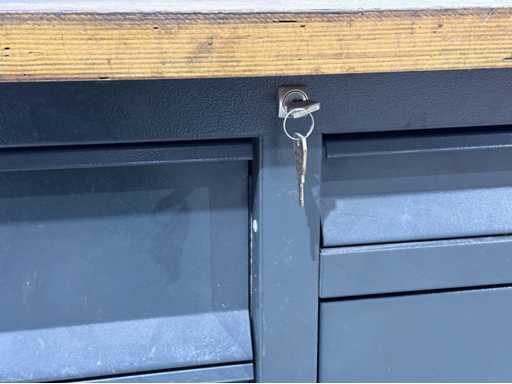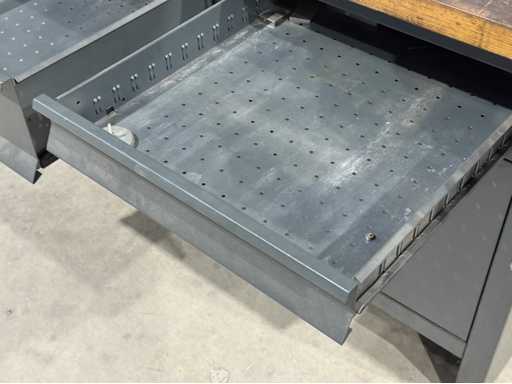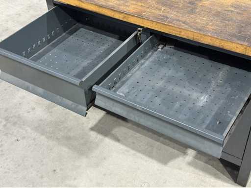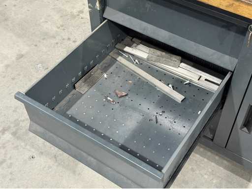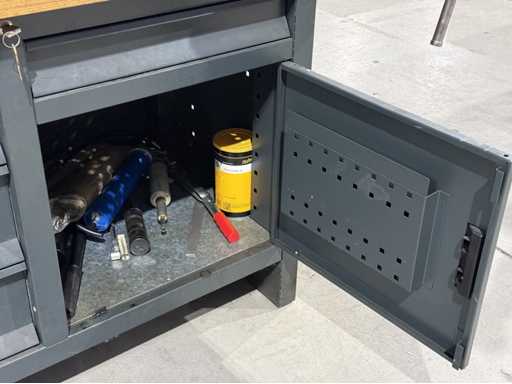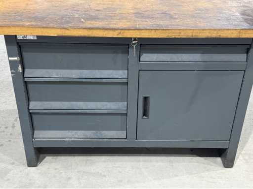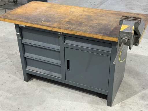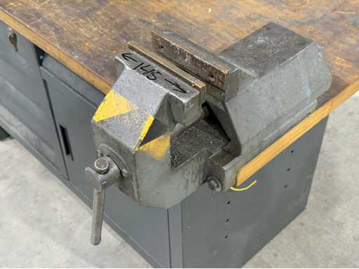 Breite der Werkbank ca. 1500mm; bestückt mit Schraubstock, Backenbreite: 145mm; weitere Details siehe Fotos