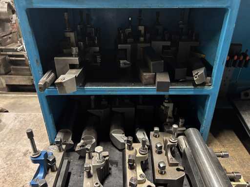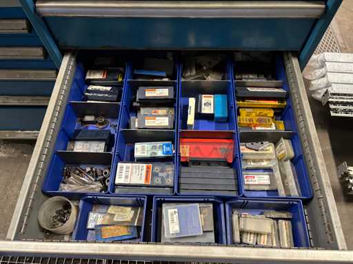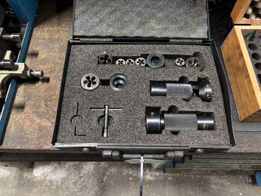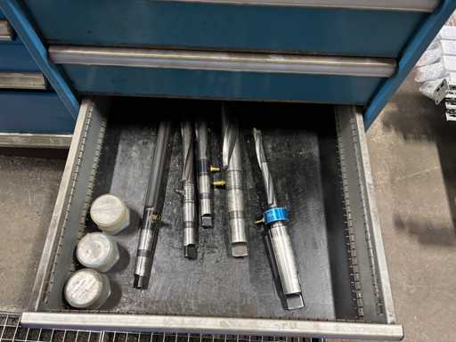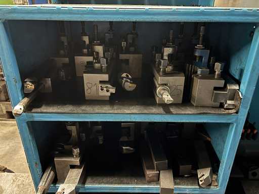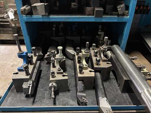 Inhalt bestehend aus ca. 28 Stück Multifix-Drehstahlhalter, bestückt mit Drehstählen in verschiedenen Größen, Typ C 32/170 und D 33/32/150, ausserdem Schneideisen, Spitzen, Wendeschneidplatten, Inbusschlüssel, Spiralbohrer, Drehstähle, Bohrstangen und Schleifscheiben, passend zu Lot 37