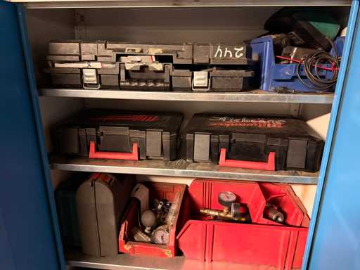 Inhalt bestehend aus diversen Handgeräten, wie einer Stichsäge von MILWAUKEE, einem Bohrschrauber MILWAUKEE, FEIN Bohrhammer, ELU Bohrhammer, Bohrhammer DUS sowie ein Bolzenschussgerät des Hersteller HILTI