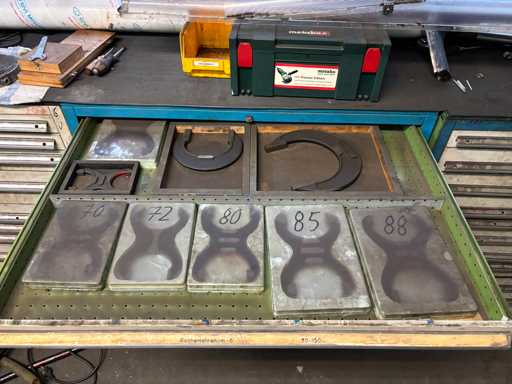 Inhalt bestehend aus diversen Rachenlehren in verschiedenen Ausführungen und Größen, Grenzlehrdornen, Messringen, Gewindelehren