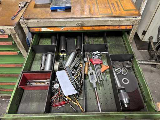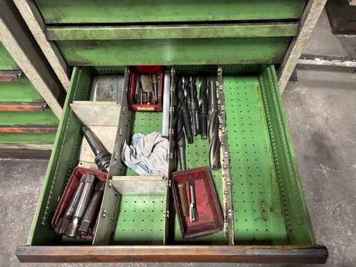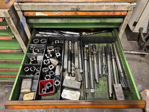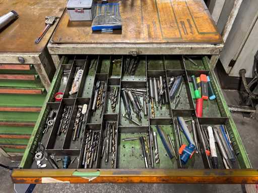 Inhalt bestehend aus diversen Spiralbohrern in verschiedenen Ausführungen und Größen, Schneideisen, Gewindebohrer, Reibahlen, Spannmittel