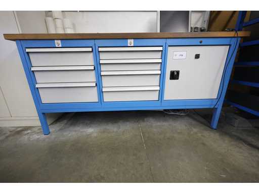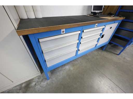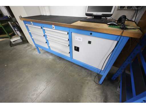 Werktisch ohne Inhalt, mit sieben Schubladen und einem großen Fach, abschließbar