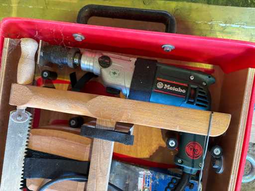 bestehend aus div. Handwerkzeugen, elektr. Bohrmaschine Metabo, Wasserwaage und Zubehör in Werkzeugkoffer