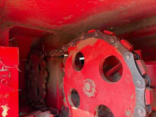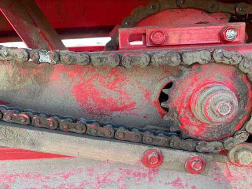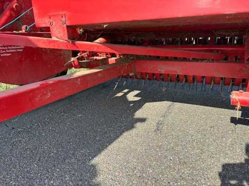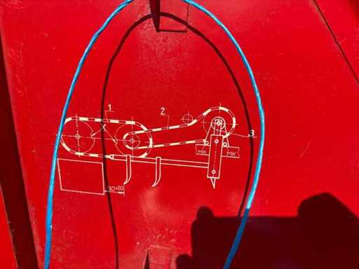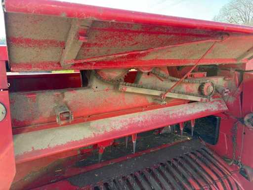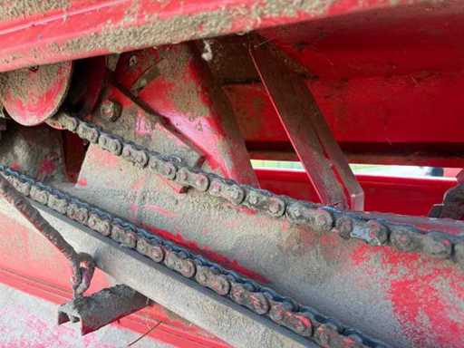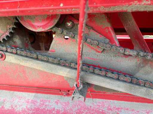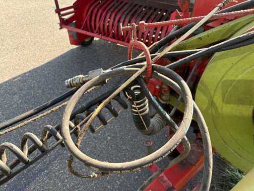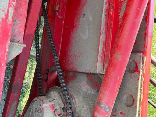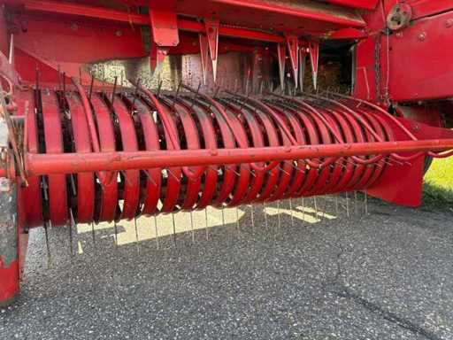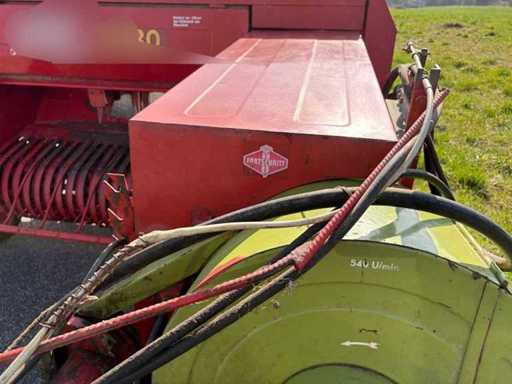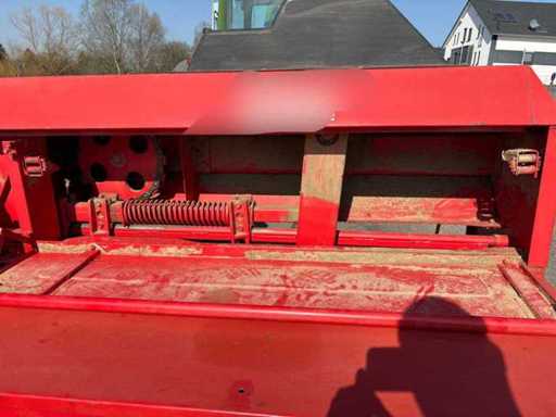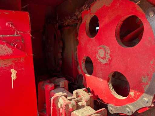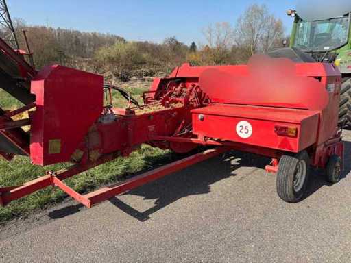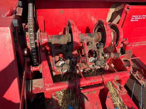 Die Maschine ist gezogen und wird über die Zapfwelle betrieben. Die kompakte und stabile Konstruktion sorgt für zuverlässige Pressleistung. Ersatzteile sind teilweise noch erhältlich, und viele Komponenten sind einfach aufgebaut und gut zugänglich.