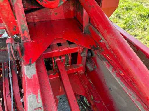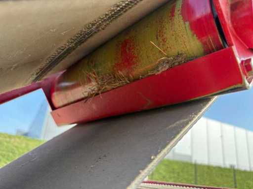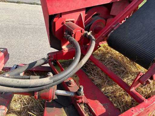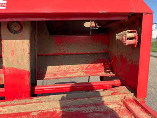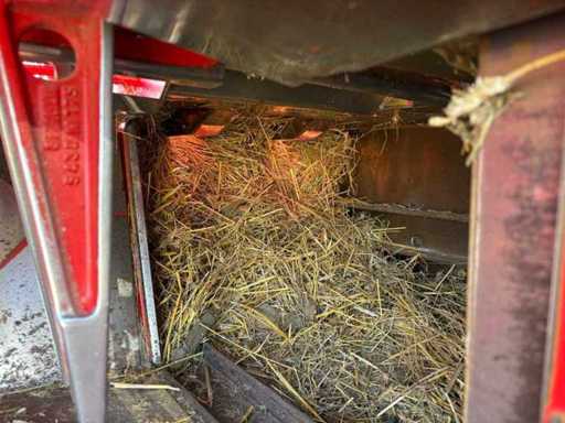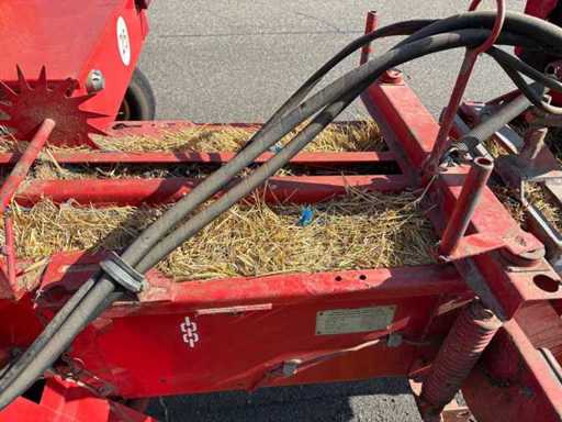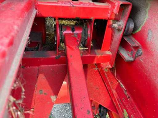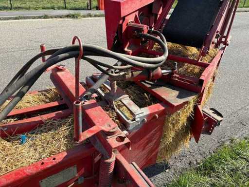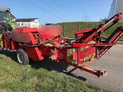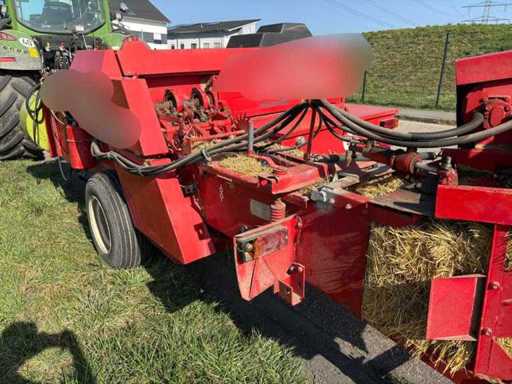 Es wurde eine Auswerfanlage (Ballenauswerfer / Ballenrampe) nachgerüstet, wodurch die gepressten Ballen direkt ausgeworfen und abgelegt werden. Das erleichtert die Arbeit erheblich, da weniger manuelles Abnehmen der Ballen erforderlich ist.
