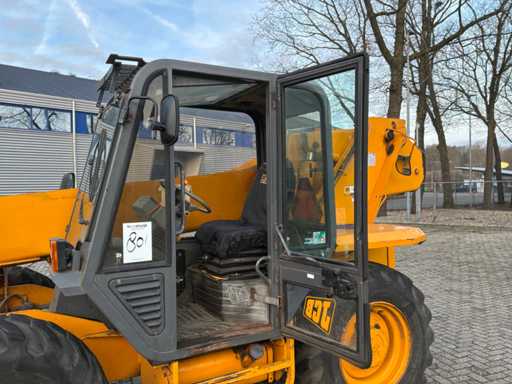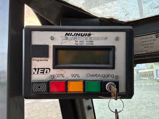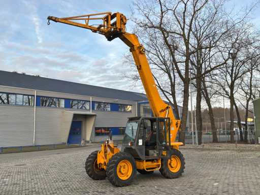 Ausgestattet mit: digitalem Lastmomentschutz, hydraulischer Hebefock, Palettengabeln. Maximale Höhe mit der Hebefock 12500 mm