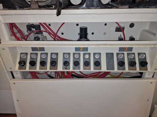 • Aggregat 3: EPICS PE-46 elektronisches geschnittenes Schleifpad: 46 Sektoren, Abmessungen des Schleifbands 2620 x 1370 mm, Motorleistung 15 kW mit Gebläsen