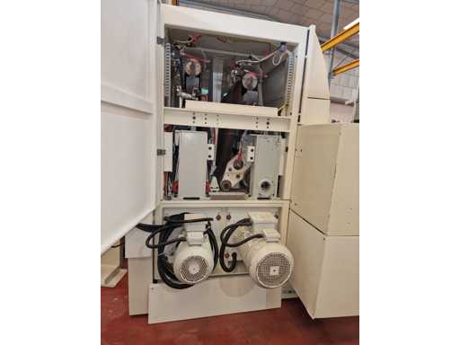 • Aggregat 2: EPICS K-RP 46 kombiniertes Walzen- und Schleifpad-Aggregat: Walzendurchmesser 220 mm, 46 Sektoren, Schleifbandabmessungen 2620 x 1370 mm, Motorleistung 18,50 kW, mit Gebläsen