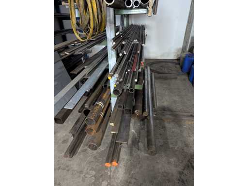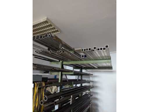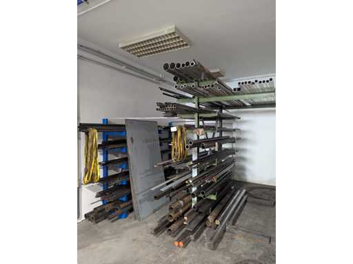 2 gefüllte Kragarmregale inkl. Stahl/Edelstahl/Aluminium sowie Blechtafeln
