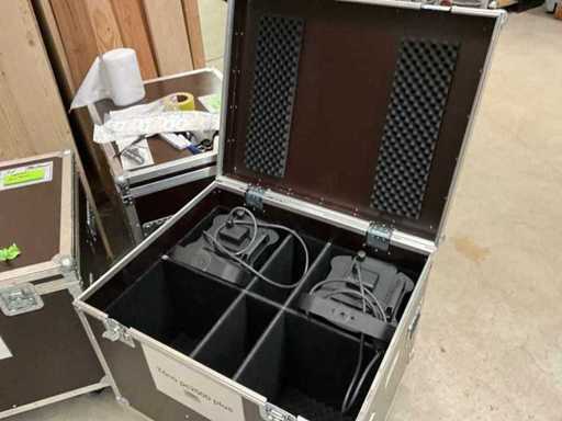 2 Stück toño pc 2000 Stufenlinse Scheinwerfer, ransportcase, Deckel zum aufklappen, vier Lenkrollen, 6-fach aufgeteilt