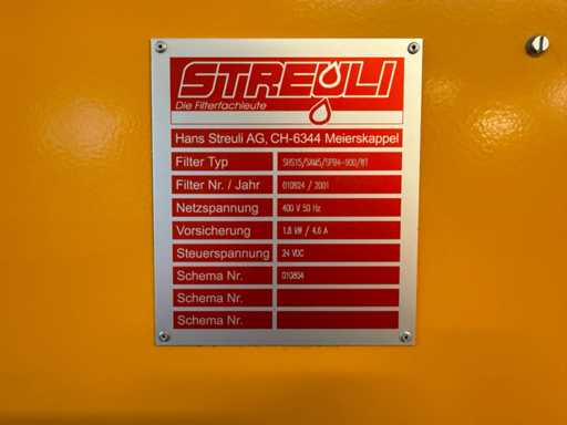 Ausgestattet mit: Streuli Papierfilter, Fibaron Ölnebelfilter, Naben, Reitstöcken, Dokumentation