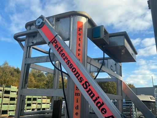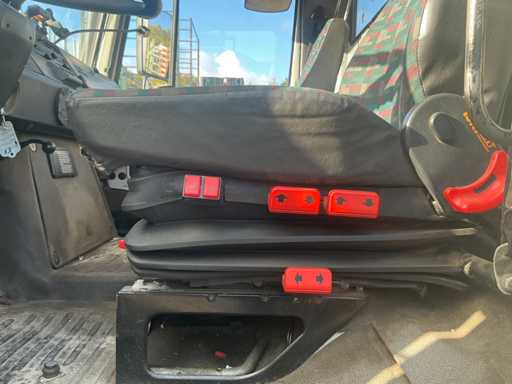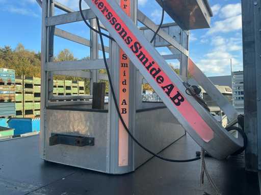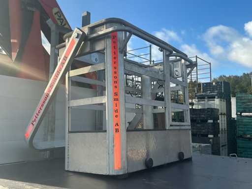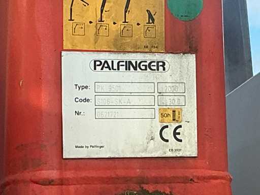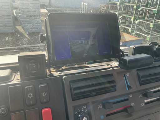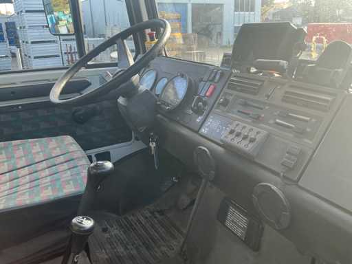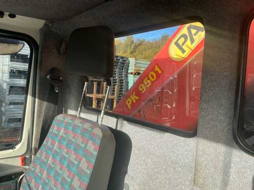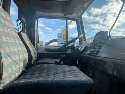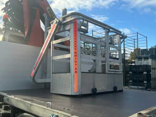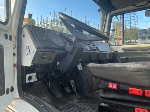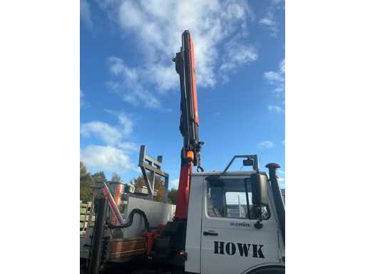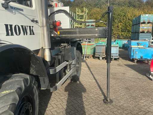 Er fährt einen Unimog mit einem Palfinger PK9501 LKW-montierten Kran (gebaut 2000) und Fernbedienung. Ausgestattet mit einem Plattform-Eimer. MOT 17.4.2026