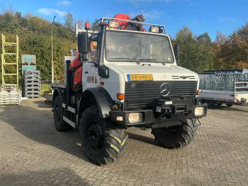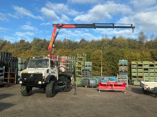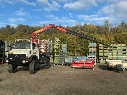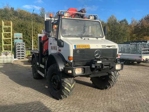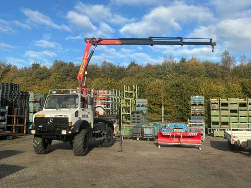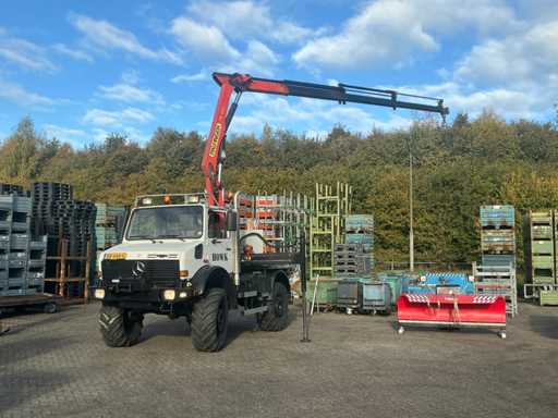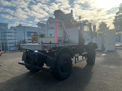 2002 Mercedes-Benz Unimog U2150L mit Palfinger PK 9501 Kran und Antennenplattform